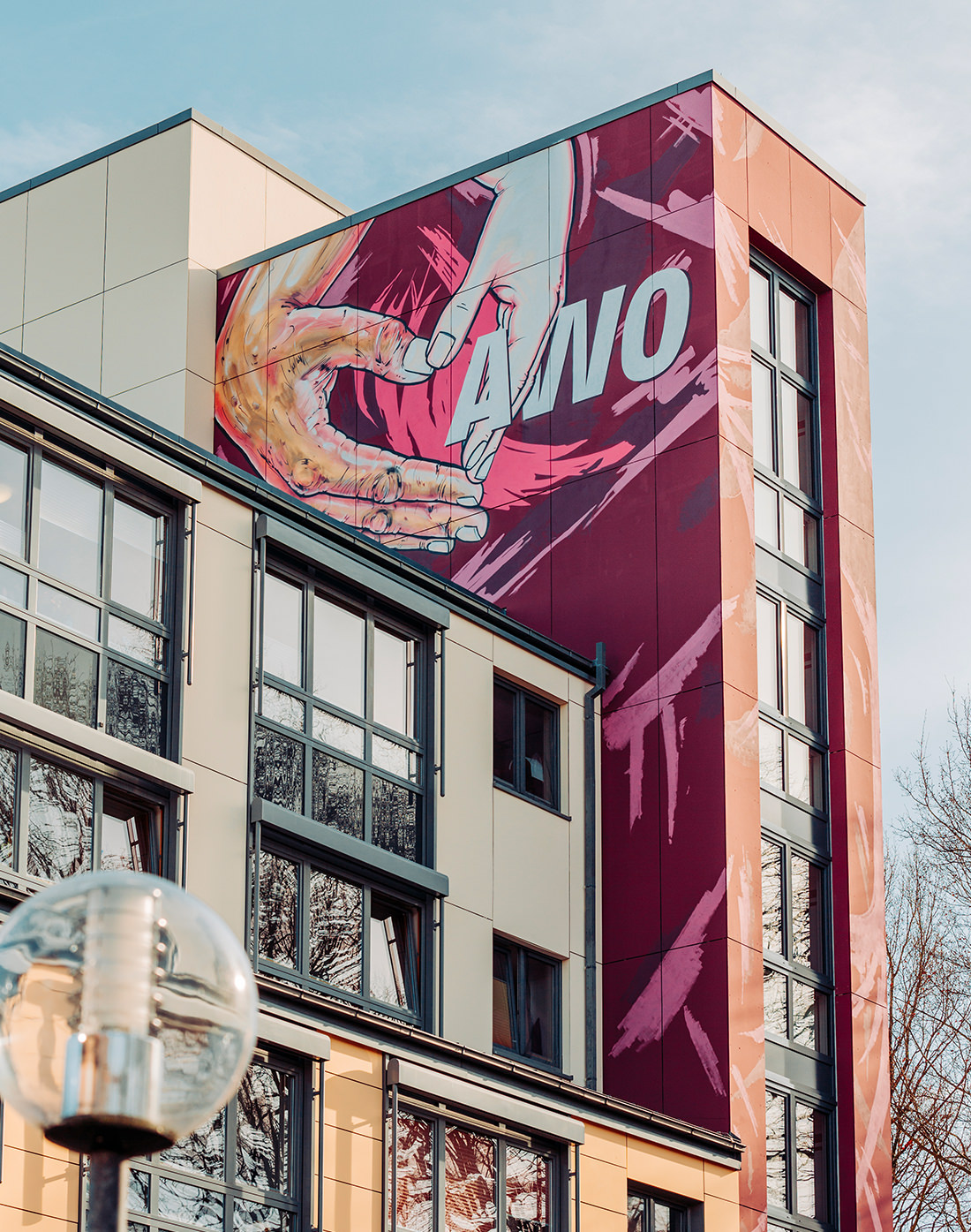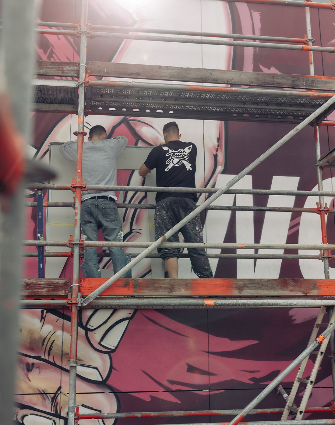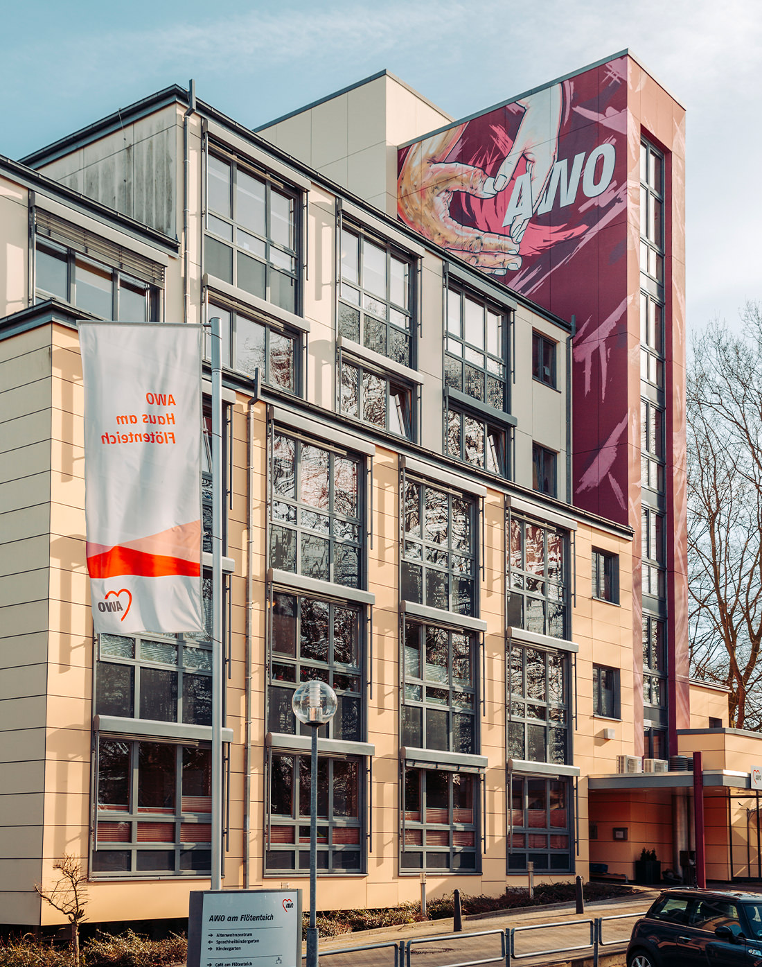 Für die Arbeiterwohlfahrt malten wir ein überdimensionales Händeherz auf die Fassade.